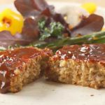 お肉の代わりに大豆たんぱくから作った荒挽きハンバーグ。