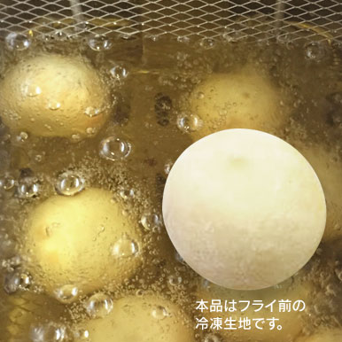 もっちり食感のドーナツ生地に3種のチーズ(チェダー・モッツアレラ・クリームチーズ)フィリングを包みました。凍ったままフライしてください。